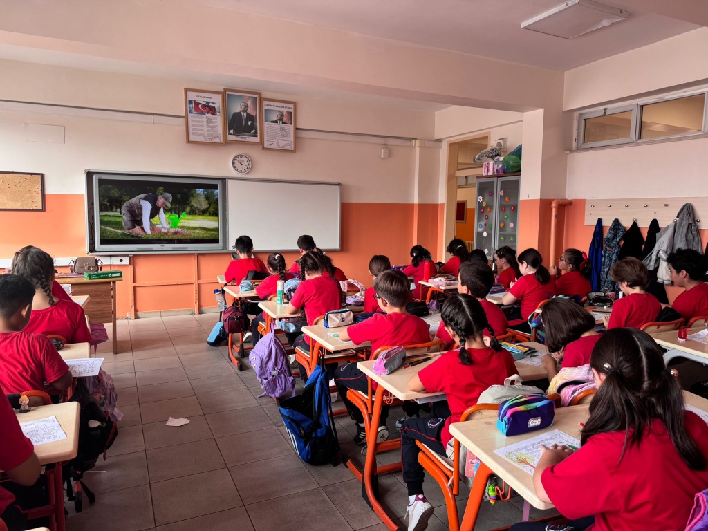 Yeni eğitim öğretim yılının ilk dersini büyük bir heyecanla yaptık. Dersimizin konusu “Yeşil Vatan” oldu. Öğretmenlerimiz; doğayı, ormanları ve çevremizi korumanın önemini anlattı.