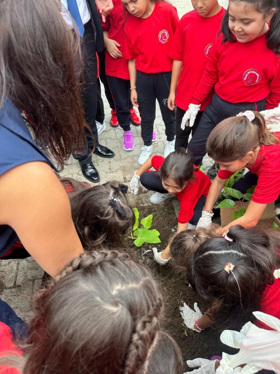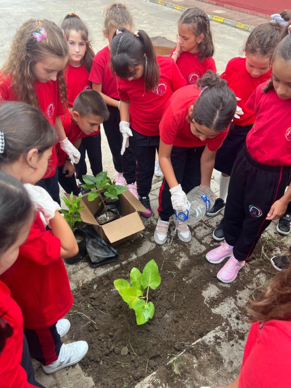 İlk dersimiz bize, yeşil vatanın geleceğimizin en büyük emaneti olduğunu hatırlattı. Yine bu kapsamda 3D Sınıfımız Öğretmen ve öğrencileriyle birlikte okul bahçemize çeşitli meyve ağaçları fidanları dikildi.